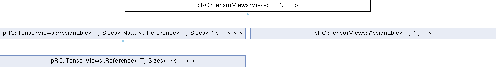 Inheritance diagram for pRC::TensorViews::View< T, N, F >: